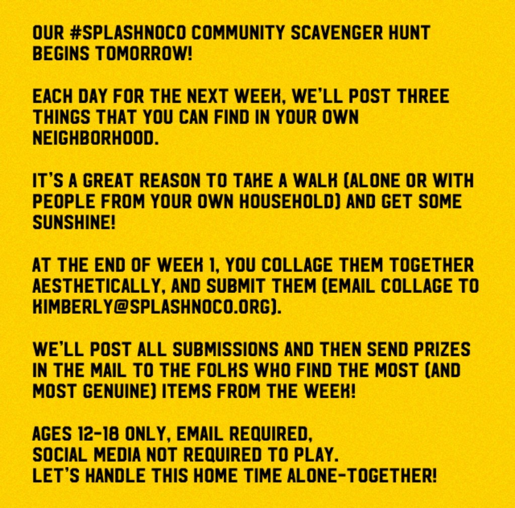 At the end of week 1, you collage them together aesthetically, and submit them (email collage to kimberly@splashnoco.org). Weβll post all submissions and then send prizes in the mail to the folks who find the most (and most genuine) items from the week!